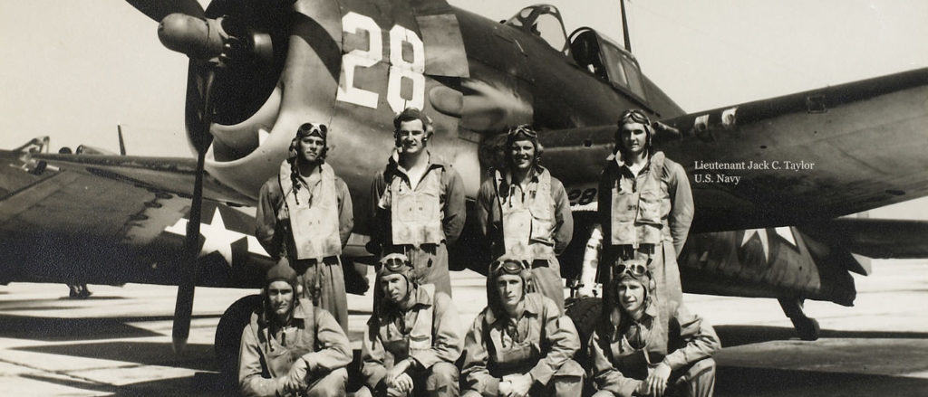 Taylor served as an F6F Hellcat pilot in the Pacific Theater during World War II, flying from the U.S.S. Essex and U.S.S. Enterprise (his company’s namesake). He was attached to Carrier Air Group 15, led by the top Navy ace of all time, Commander David McCampbell. CAG 15, which sustained more than 50 percent casualties during the war, was one of the most decorated combat units in the history of U.S. Naval Aviation. Taylor, who served as McCampbell’s wingman on several combat missions, was twice decorated with the Distinguished Flying Cross. He also received the Navy Air Medal.