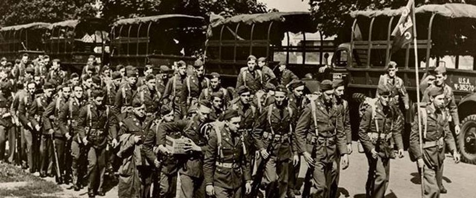 "C" Company of the 104th Engineer Regiment, NJ National Guard, marches into Fort Dix in September, 1940. Called up for "one year of training" the Guardsmen ended up serving through WWII. | National Guard photo