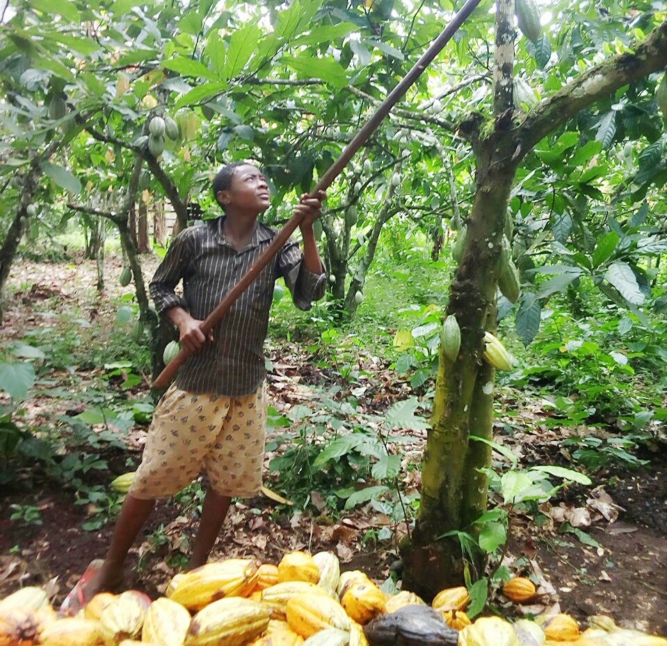 For the first five years of their lives, the flowers and budding cacao seeds are trimmed. This is done to ensure the most nutrients and energy are used to grow and strengthen the tree. It is at this five-year mark when the seed pods can be harvested. When harvesting the cacao pods workers cut them off instead of ripping them off. The pods will grow again during the next season in the same location, so harvesters are careful to cause as little damage to the branches as possible.