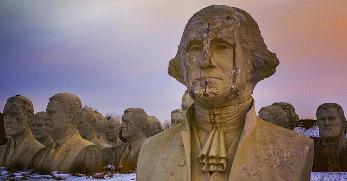Now, the heads are decaying. Ronald Reagan was struck by lighting and still wears the scar from the strike. The ground around the statues is overgrown with vegetation, and frogs now live inside James Madison. There isn’t even a bust of President Obama because the failing park couldn’t afford the sculptor’s $60,000 fee.