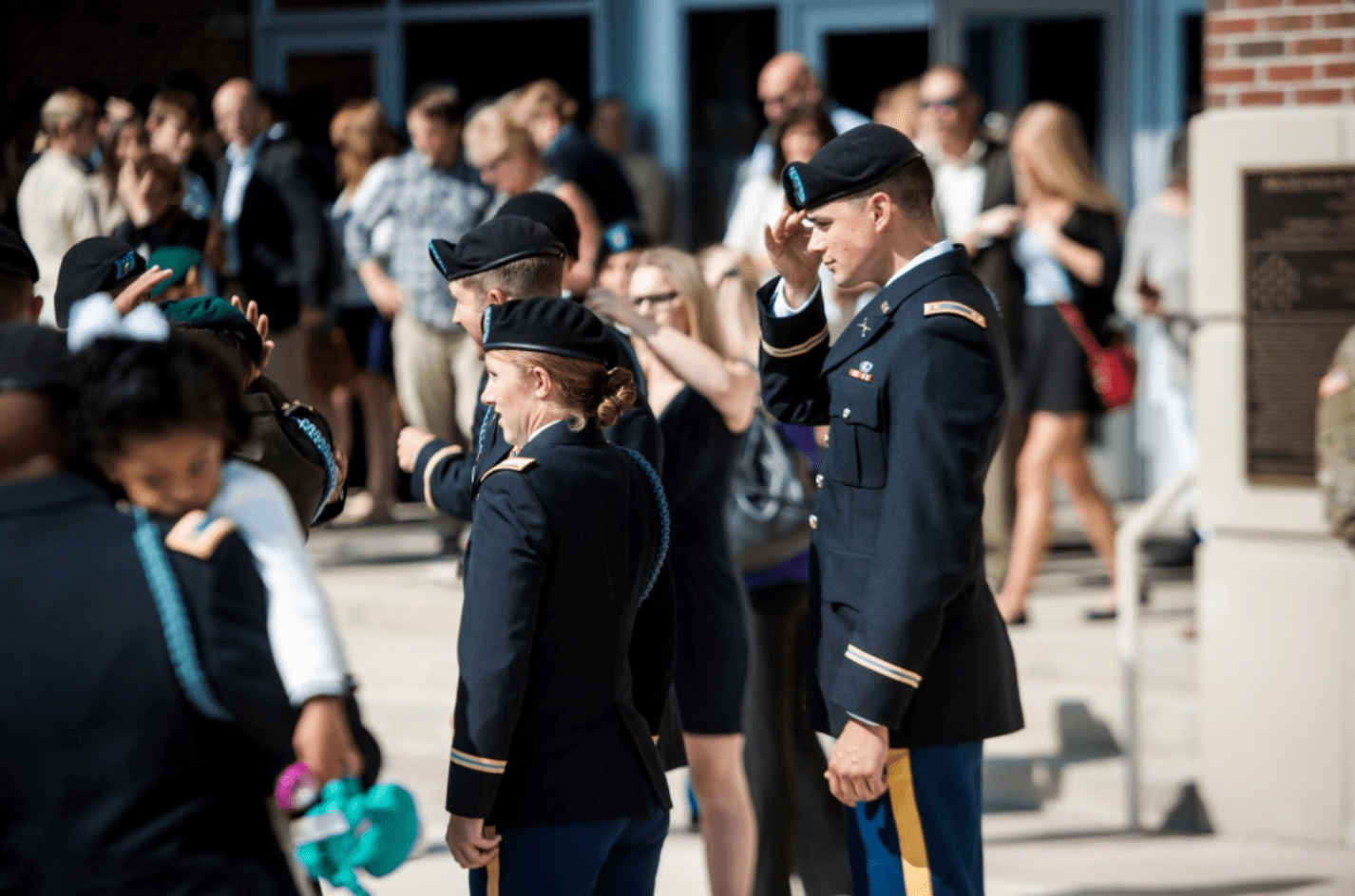Featured image: (FORT BENNING, Ga.) Students from the Infantry Basic Officer Leader Course (IBOLC), Class 07-16, celebrate with their families and fellow classmates after graduation, October 26, 2016, here, at McGinnis-Wickam Hall. (Photos by: Patrick A. Albright/MCoE PAO Photographer)