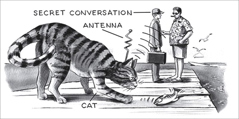 Acoustic Kitty is not the name of the cat itself, but the name of a $20 million CIA project intended to spy on the Kremlin and Soviet Embassies. A microphone was implanted into the ear canal of a cat, with a small radio transmitter implanted at the base of its skull. The first cat was thought to have been immediately hit by a taxi. CIA researchers concluded there were too many issues involved in training the cats and the project was discontinued.