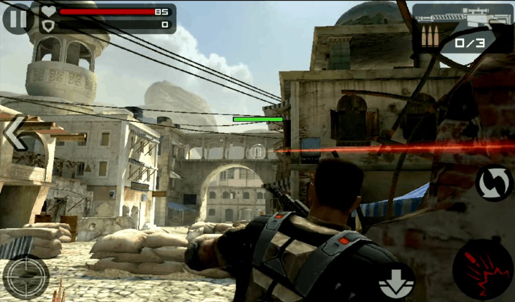 Frontline Commando is an older game that pits the player as a sole survivor of an attack against the entire army of the dictator who killed his team. This third-person shooter has lots of weapons and power-ups to try and the storyline can keep you entertained for hours. Unfortunately, there’s no multiplayer.