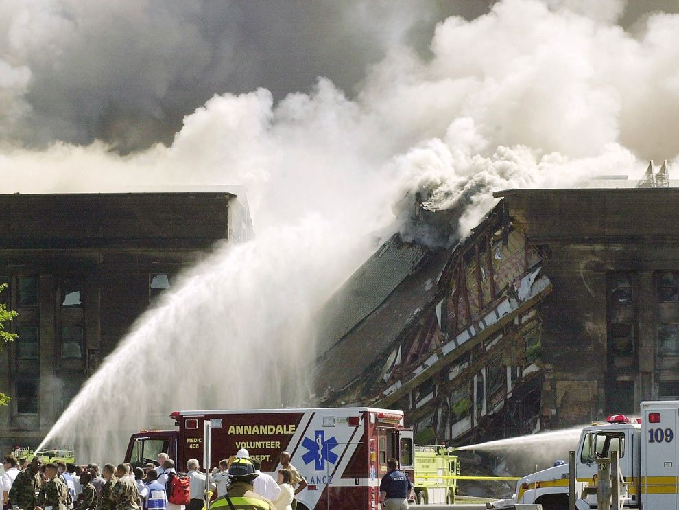 I made my way into the first floor entrance on the west side of the Pentagon, where the aircraft had obviously impacted the building. Smoke was escaping from the upper floors through broken windows. The first floor was filled with a smoky haze, but you could see figures moving in and out of the corridors. I saw the same Marine major standing there. He had been asked to prevent folks from probing deeper into the burning belly of the Pentagon, since most of us didn’t have any fire protection, breathing gear or helmets, but his efforts were fruitless. People wanted to help and were headed in anyway. He asked me to take his place on guard, but I couldn’t stop anyone trying to help, either.