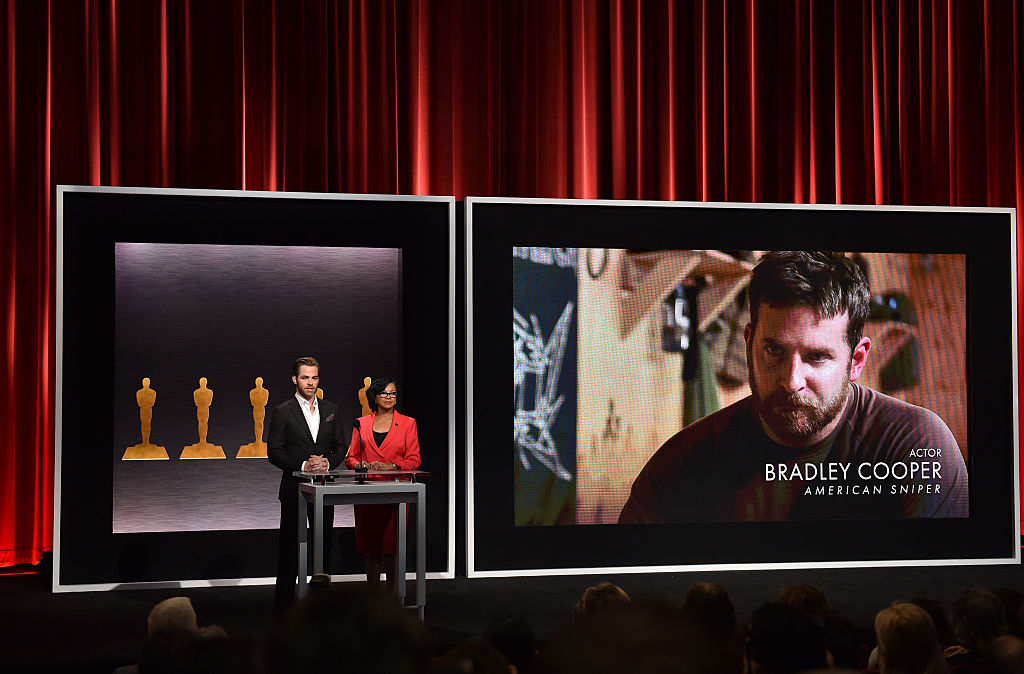 “American Sniper” opens looking down the barrel of a military sniper rifle. The view moves in close to reveal the bearded face of Chris Kyle (played by Bradley Cooper) behind the scope. He watches U.S. Marines below him searching houses before spotting an Iraqi mother and a young boy.