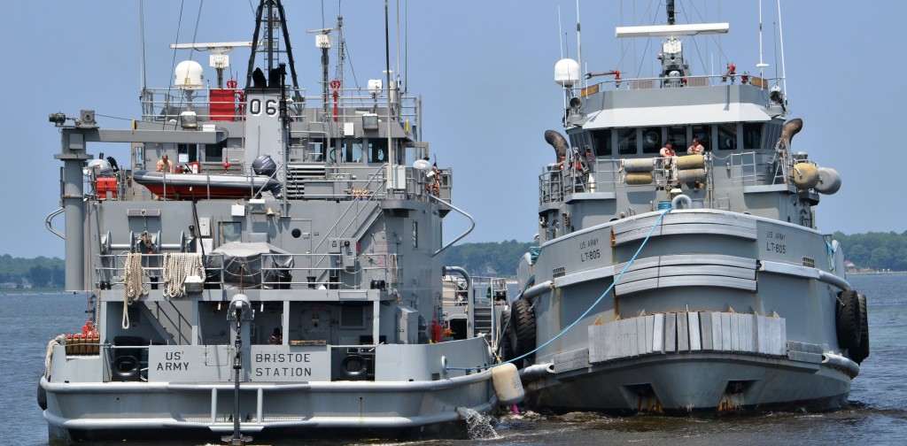 Army tugs are used primarily to maneuver friendly ships in tricky ports or waterways just like civilian tugs. They are also useful for repositioning cranes and moving floating piers or barges into position.