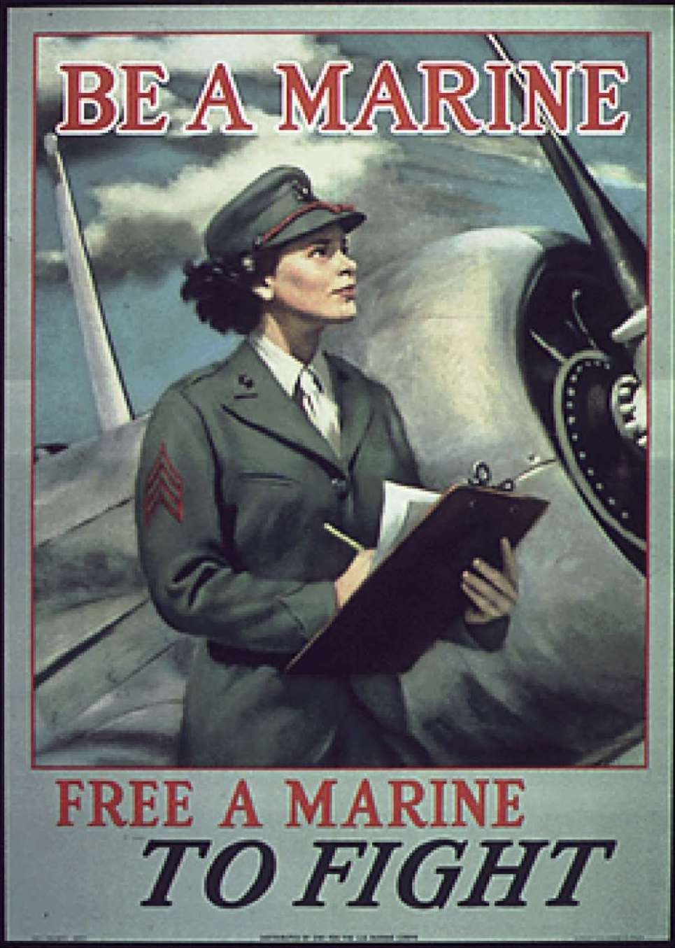 In 1943, the Marines became the last military branch to accept women into their ranks. They announced a call for enlistments with the marketing slogan, “Be a Marine … Free a Man to Fight.” With the addition of women into their force for administrative and behind-the-scenes work, men who were previously performing those jobs were able to head to the frontlines.