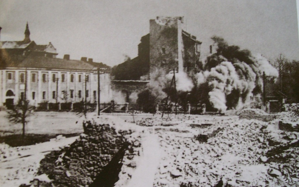Overall, 380 bombs fell on Wieluń, weighing a total of 46 tons. The first ones hit the All-Saints Hospital. 32 people died there – patients and staff. These were the first victims of the German air raids during World War II. The next target was the oldest parish church in Wieluń, St. Michael the Archangel, built in the beginning of the 14th Century. The Piarist building was the only surviving structure on the old square.