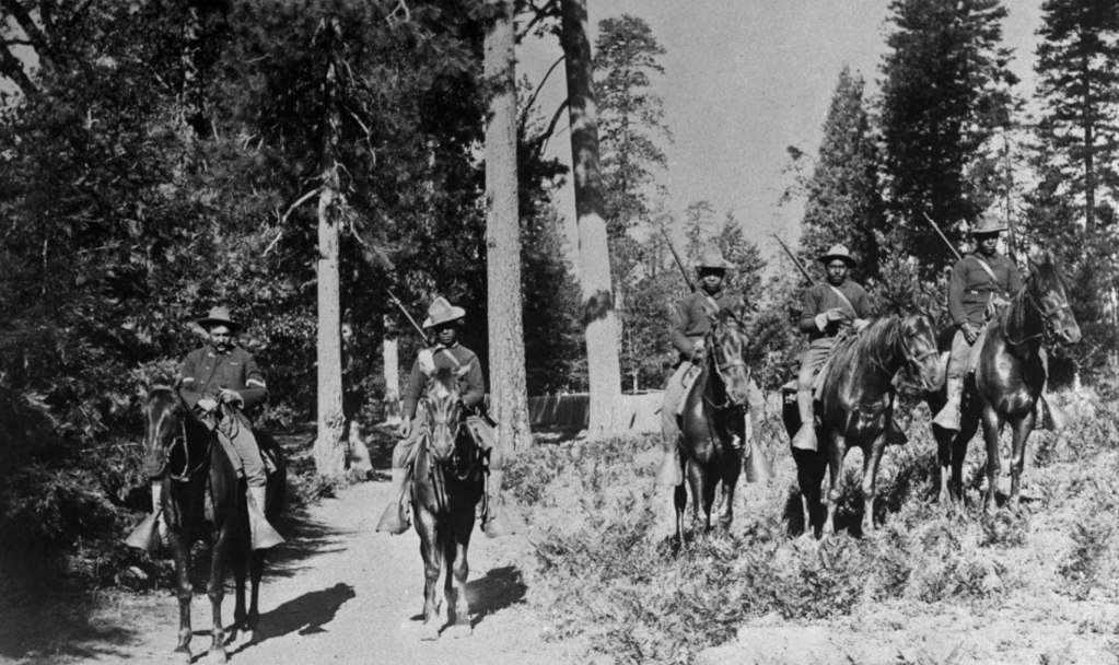 In 1891, the job of patrolling Yosemite and Sequoia National Parks was given to the US Army. These troops were garrisoned at the Presidio of San Francisco during the winter and served in the Sierras during the summer. The assignment was highly coveted with one officer referring to the Sierra Nevadas as a “Cavalryman’s Paradise.” Among the soldiers who protected America’s natural beauty were the Buffalo Soldiers of the 24th Infantry and 9th Cavalry. They served in both Yosemite and Sequoia National Parks in 1899, 1903, and 1904.