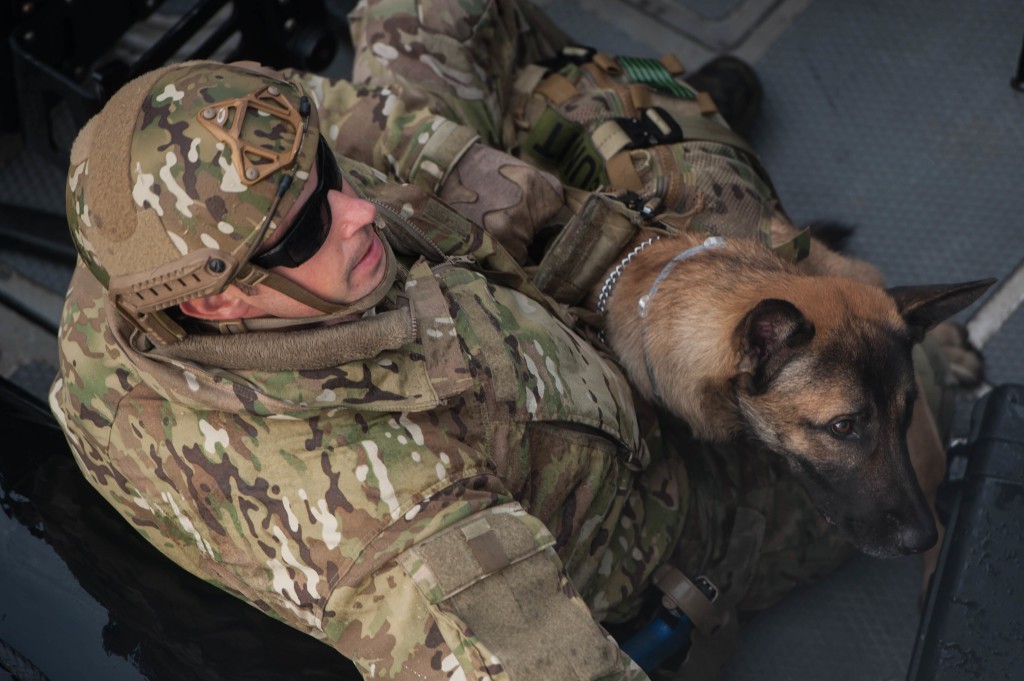 A military working dog with the MSRT was brought in to search the vessel while his human counterparts controlled it.