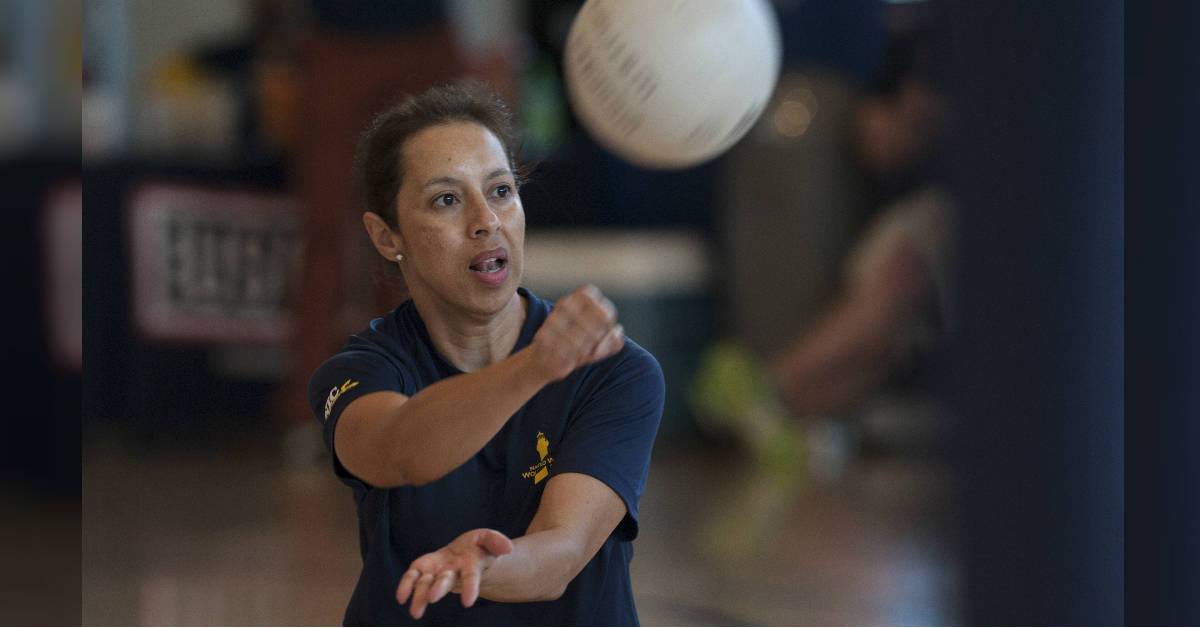 Lt. Cmdr. Maria G. Mannix is a Navy surface warfare officer who is competing in the 2016 Warrior Games. The cancer fighter has had to juggle her time between doctor appointments, her duties as a deputy director of the Training Support Center in San Diego, and training for the Warrior Games where she’s a competitor in shot put, discus, rifle shooting, and sitting volleyball.