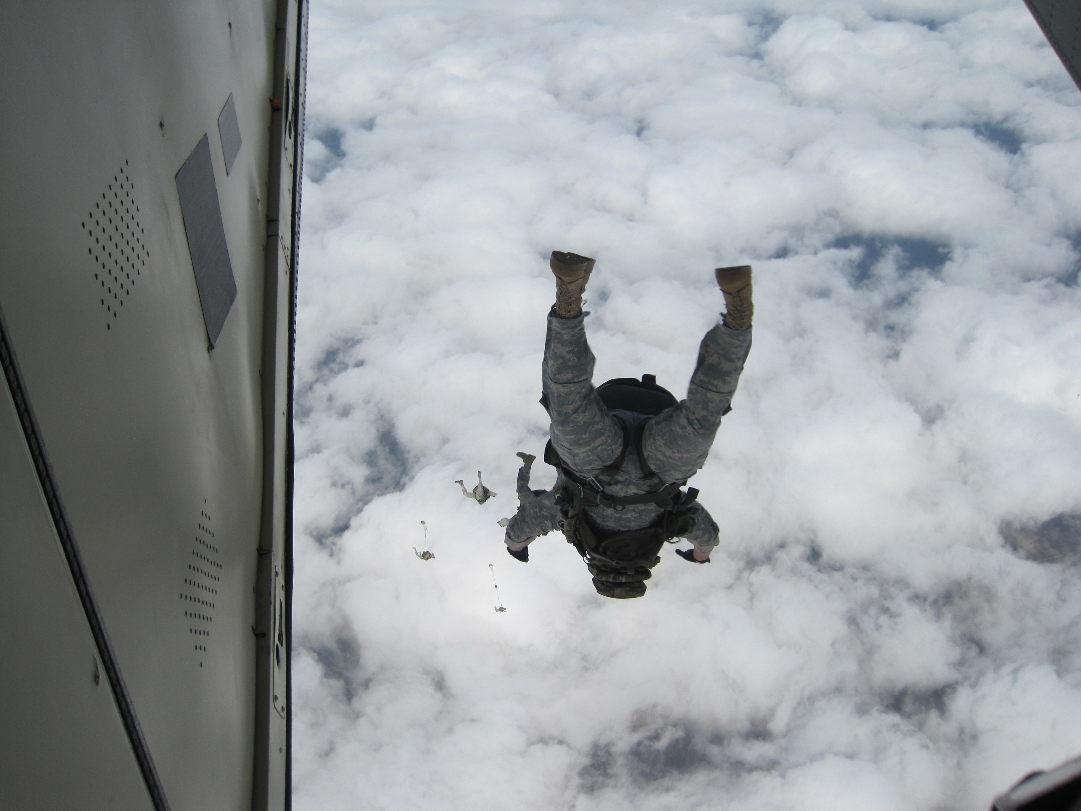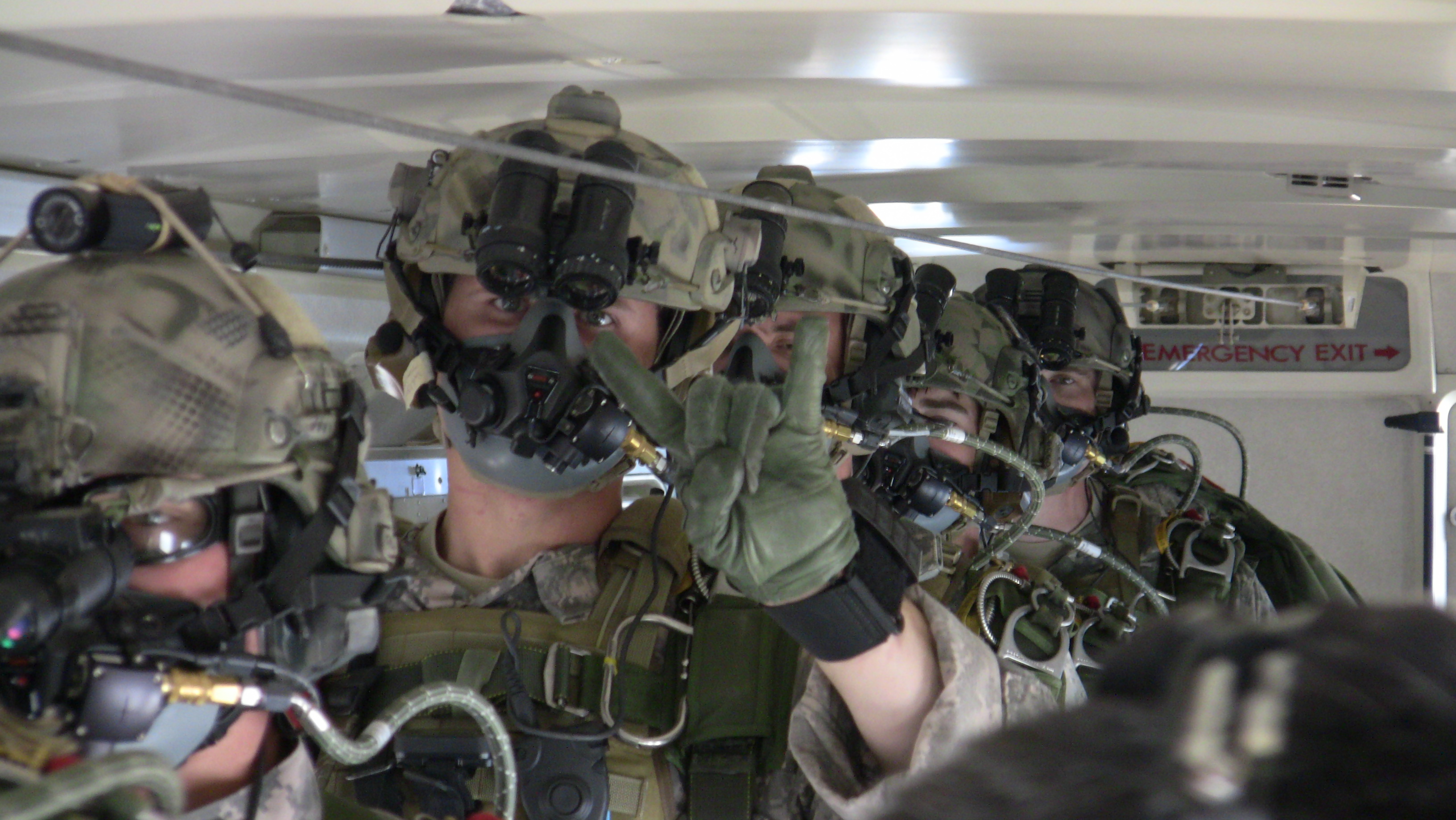 “There was a night jump in Arizona and I think we jumped at like 14,000 feet. We weren’t jumping with NVGs [night vision goggles] and you had to look for the red chem light or green chem light on the back of the guys’ helmets in front of you,” Wilson explained.