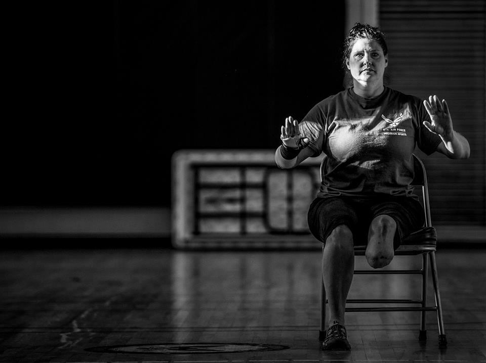 A U.S. Air Force wounded warrior engages her core in preparation for exercises during an Air Force hosted North East Regional Warrior CARE event at Joint Base Andrews, Md., Nov. 17, 2015. The Air Force Wounded Warrior Program is a federally mandated program that provides personalized care, services and advocacy for wounded, ill and injured service members. (U.S. Air Force photo by Staff Sgt. Marianique Santos)