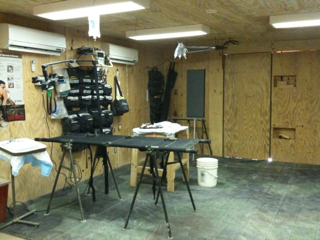 Typically, an aid station consists of a few doctors, a few nurses, and a few medics or Corpsmen. Once the wounded enter the medical station, their life status is quickly re-determined. Although the medic did this earlier in the field, the aid station will reassess using the same process of triage, as the patient’s status could have changed during transport.