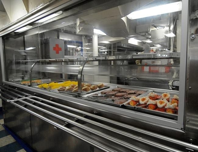 After quick showers and putting on “zoom bags” (flight suits), aviators hit the chow line before the mission brief.