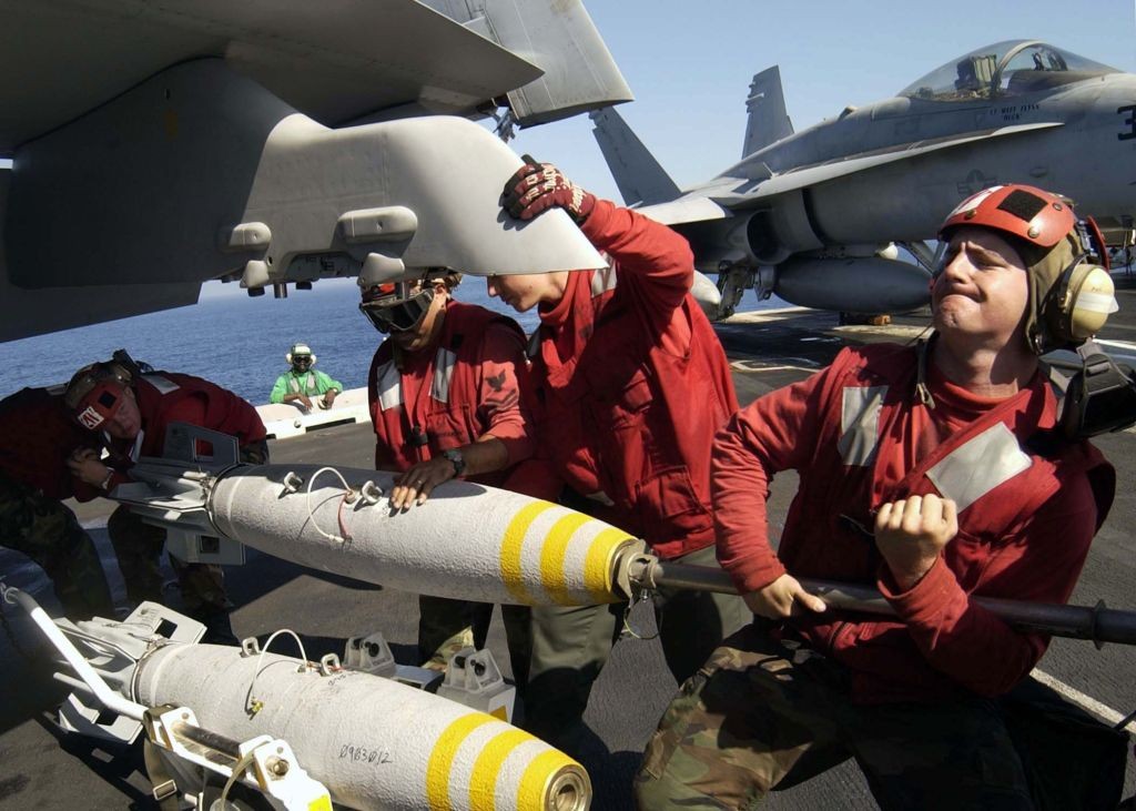 At the same time ordnance crews strap bombs onto jets according to the load plan published by Strike Operations.