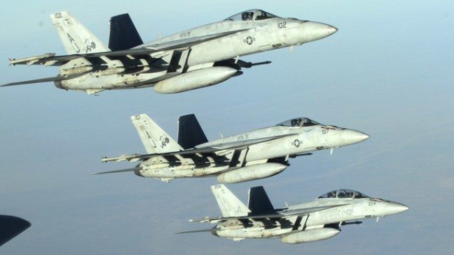 E/F-18 Growlers — electronic warfare versions of the Super Hornet — are part of the strike package in the event of any pop-up surface-to-air missile threats.