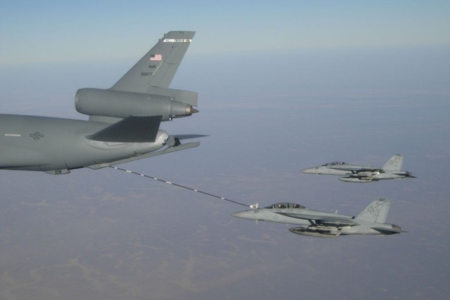 Mission complete, the jets head back “feet wet,” stopping at the tanker once again along the way.