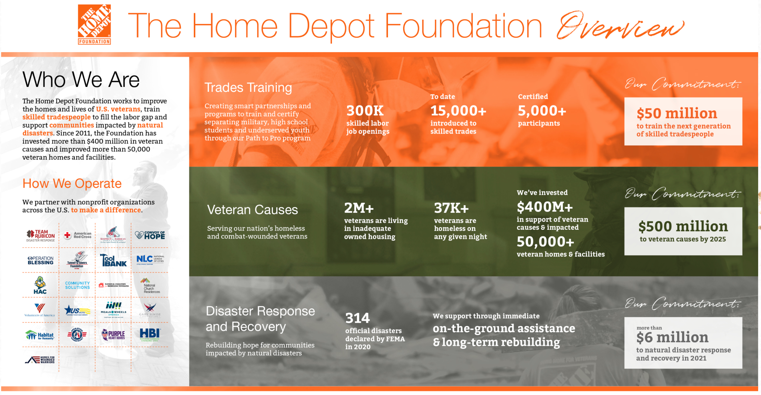 The Home Depot recently celebrated 10 years of partnership with organizations like Habitat for Humanity, Volunteers of America, Operation Homefront, Semper Fi & America’s Fund, U.S. VETS and so many others.