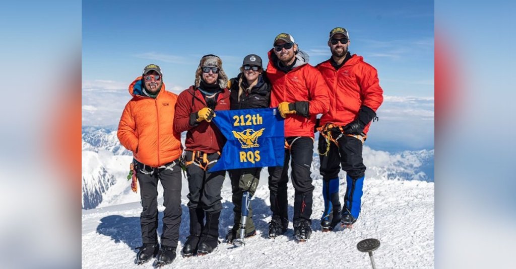 Featured Image: Kirstie Ennis with the 212th Rescue Squadron at the Denali Summit. (Kirstie Ennis Instagram)