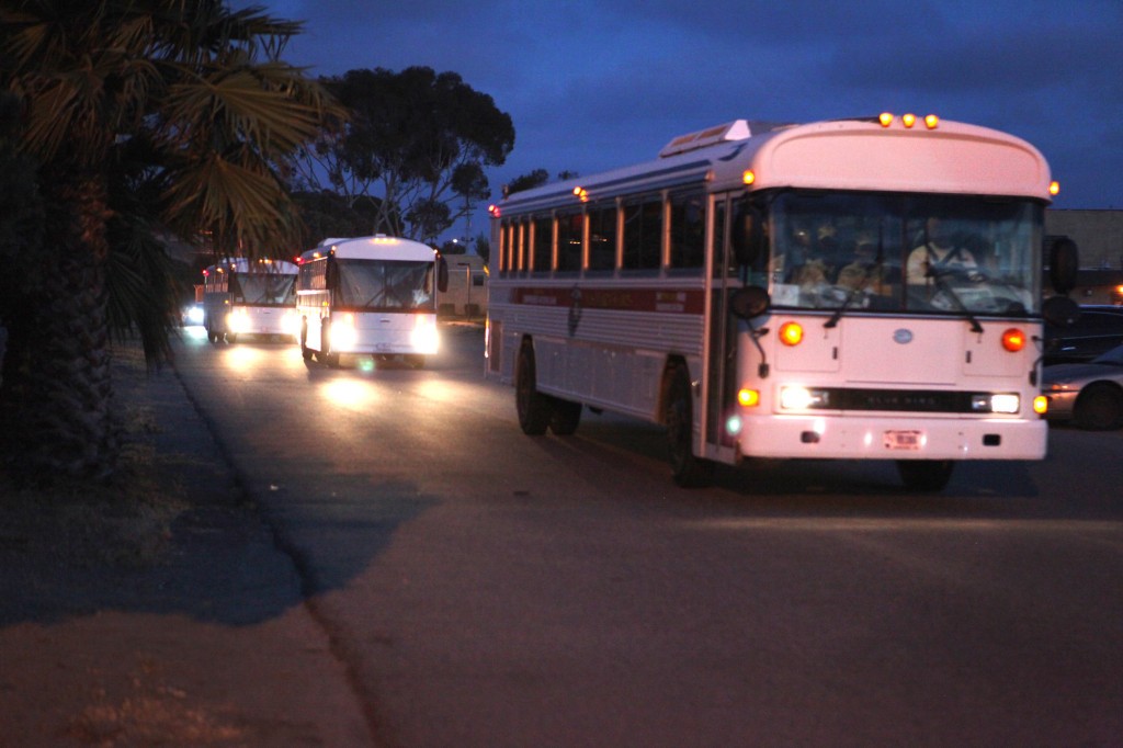 Not all recruit training takes place at MCRD San Diego. To complete the second of three phases, they are moved 45 minutes north to Camp Pendleton. The ride takes recruits through San Diego’s beautiful north county and it’s the first time recruits are off base since arrival. They are supposed to keep their heads down but it’s common to sneak a glimpse at the beautiful landscape around them and think about home or what’s in store for them at Camp Pendleton. Similarly, on the way back to MCRD to finish the last phase, it gives recruits a time of reflection on completing the demanding training they just endured during second phase and realize they are that much closer to graduation.