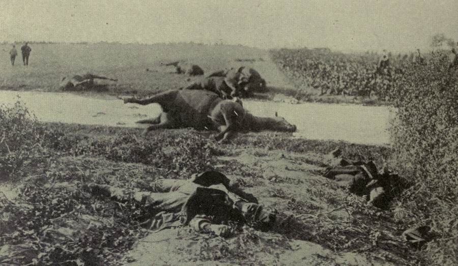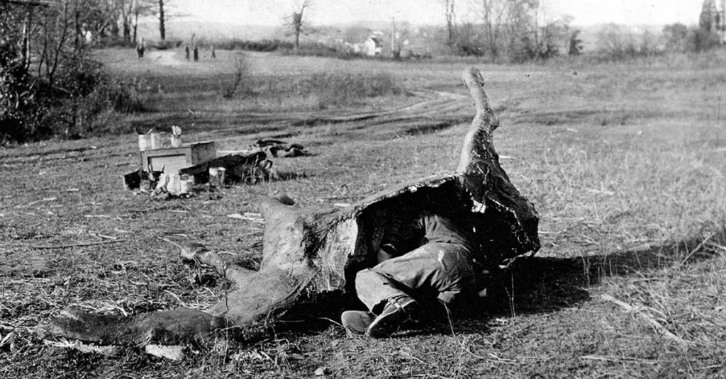 They weren’t alone, though. They were using a very special kind of shelter … the hooved kind. Don’t worry, no one was actually crawling inside of dead horse bodies to hide from enemy artillery fire. Though a dead horse is what started this whole thing.