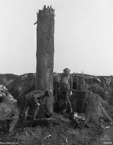 The cluster of dry wood was optimistically named the Oosttaverne Wood, one of the last clumps of nature left in the battlegrounds near Messines. It actually looked like a bunch post-apacolyptic metal posts, which gave the Germans an idea. They couldn’t send a sniper in to hide amongst the trees because there weren’t enough branches to cover him, but they could send them inside their own tree.