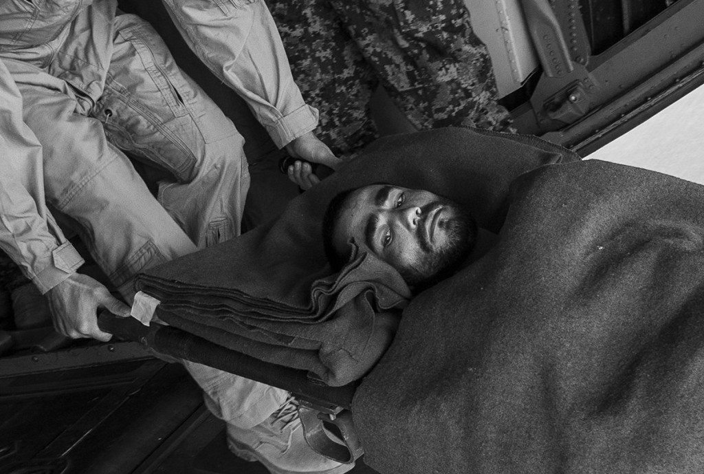 Casualties airlifted by an Afghan Air Force C-130 Hercules from a Taliban attack on Camp Bastion, are offloaded on Dec. 1, 2014 at Kabul International Airport. The Afghan military successfully repelled the attack on the camp after receiving control of the base from coalition forces a month earlier.