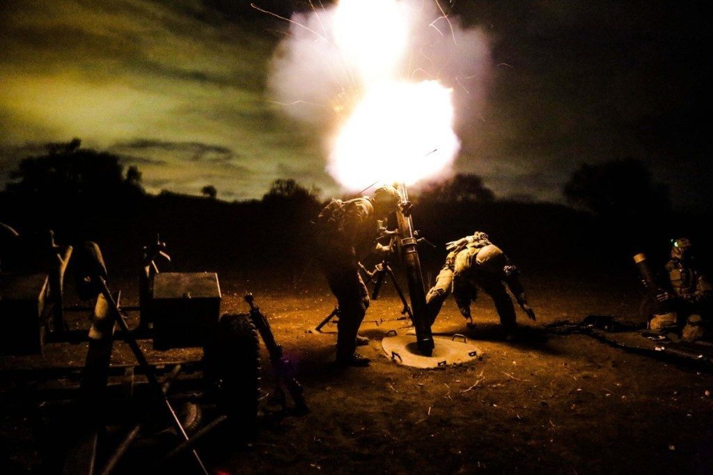 US Army Rangers assigned to 2nd Battalion, 75th Ranger Regiment, fire a 120 mm mortar during a tactical training exercise on Camp Roberts, Calif. on Jan. 30, 2014.
