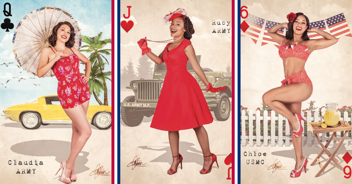 The non-profit recently crossed a threshold of over $100,000 of rehab and medical equipment donated to VA and military hospitals. Their main fundraiser is an annual pin-up calendar featuring veteran models, but this year they expanded their efforts with their timeless new deck.