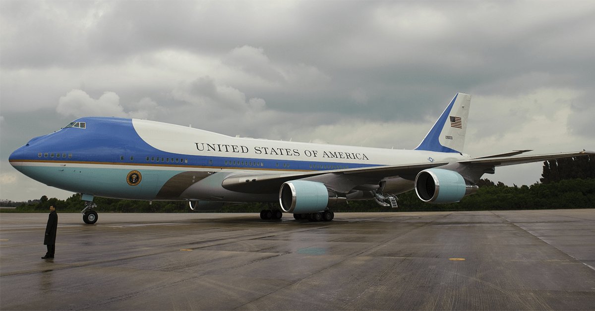 Air Force One — the Air Force callsign created in 1953 to designate the President’s plane — is a Boeing 747 that measures 231 feet long, seats 100 passengers, and races in at a max speed of 700 miles per hour. It comes fully equipped with enough fuel to fly 7,800 miles.