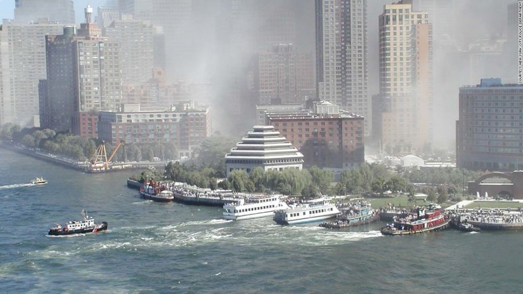 The Coast Guard’s New York Sector shut New York Harbor and restricted ship movements. Following the collapse of the South Tower, a tidal wave of people arrived at the Lower Hudson River piers, desperate to get off the island.