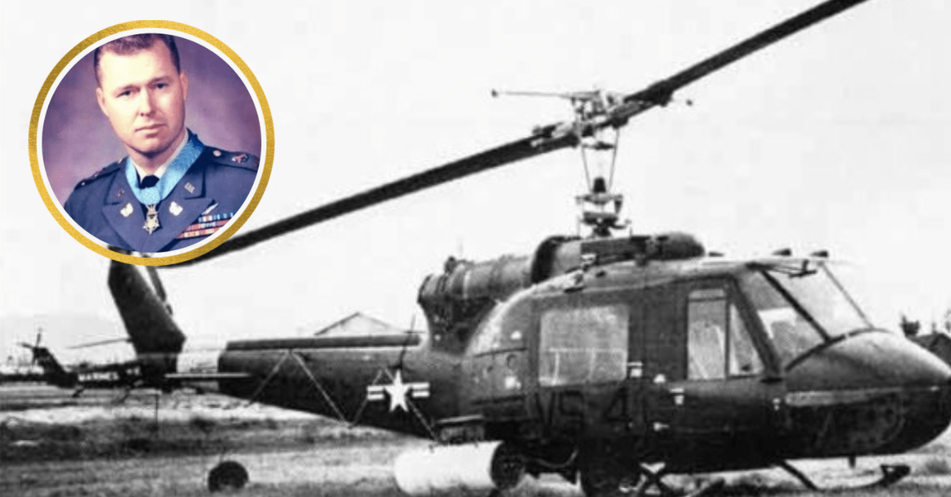 He immediately disregarded his resupply mission and made his way to Hue, where he also started taking anti-aircraft fire. He took his bird on a low-level flight along the Perfume River at maximum airspeed as he flew to the city and found the isolated ARVN compound where the remains of the downed helicopter still lay.