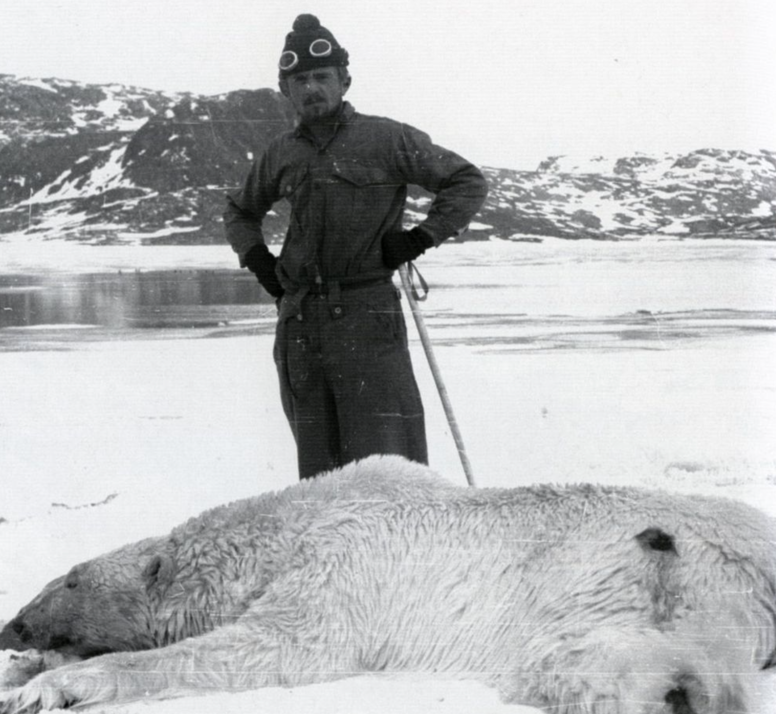 Featured photo: A member of the weather station with a slain polar bear. Photo: From the archive of Wilhelm Dege.