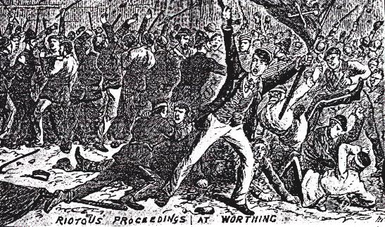 The confrontations came to a head in Worthing, England in 1884. As the Salvation Army marched, local police tried to keep the peace between the Skeletons and the marchers, but things boiled over rather quickly. 4,000 Skeletons met the Salvation Army on the “battlefield” or Worthing, throwing bricks, rocks, glass, eggs and whatever else wasn’t nailed down.