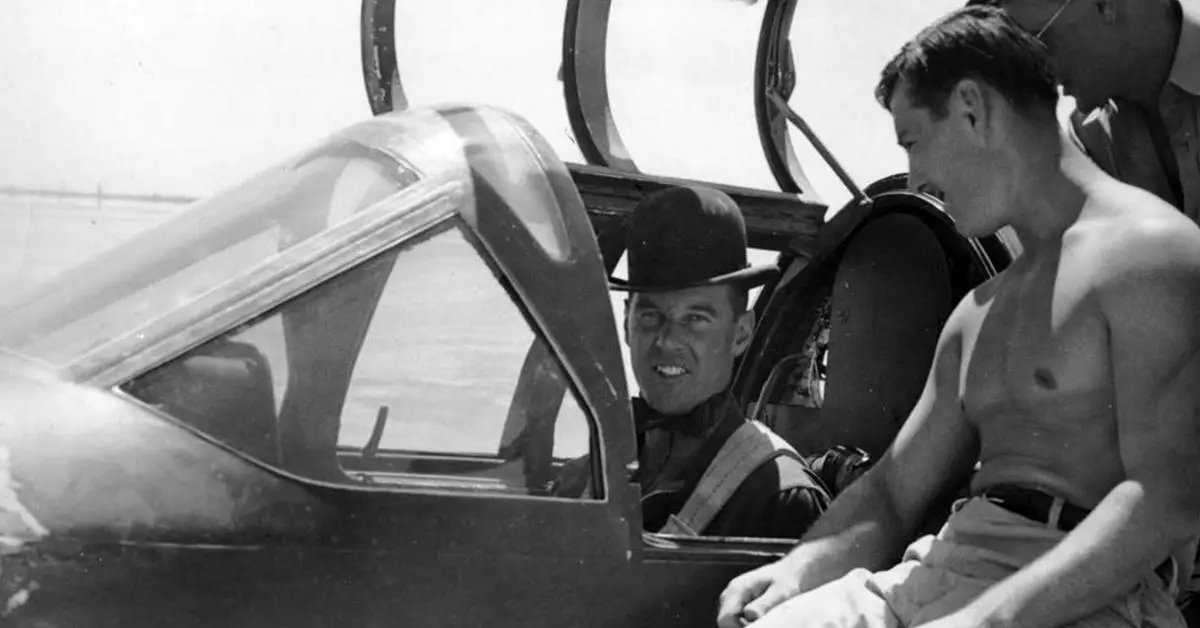 In the air, however, it was a different story. Test pilots flying the usual piston-driven aviation engine would report back to base with sightings of a fast-moving plane without a propeller. They also claimed the aircraft was flown by a “gorilla, wearing a derby hat, waving a stogie at them.”