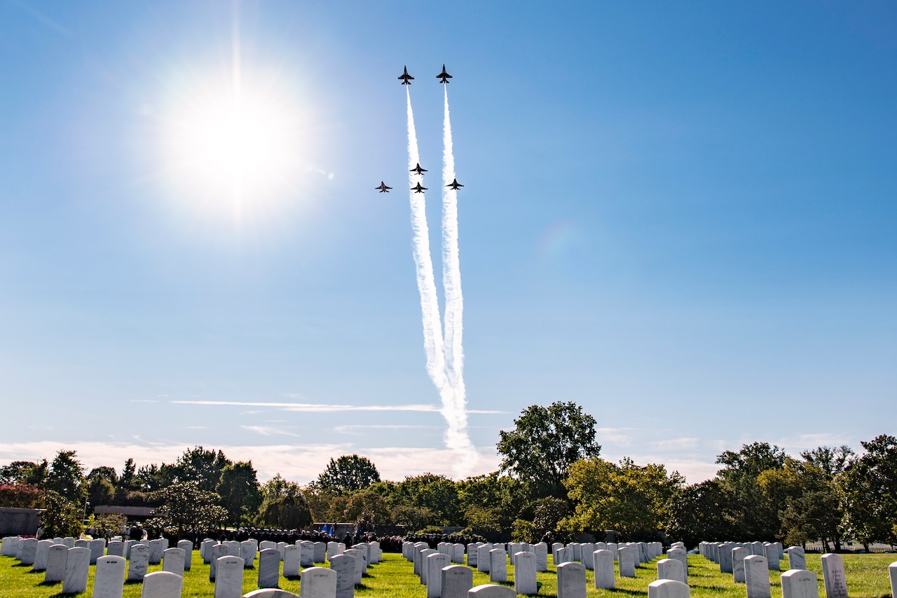 Cuthbert rose to the rank of Major General before retiring in 1980. Charles retired the next year, one rank higher, as a Lieutenant General. Both men retired in Virginia before their deaths; Cuthbert in 2014 and Charles in 2019. On September 14, both brothers were interred in Section 60 of Arlington National Cemetery. Cuthbert’s wife, Joyce, and Charles’ wife, Bobbie were also interred during the service. Fittingly, the Thunderbirds performed a double missing man formation flyover for the funeral, saluting two of the squadron’s founding members.