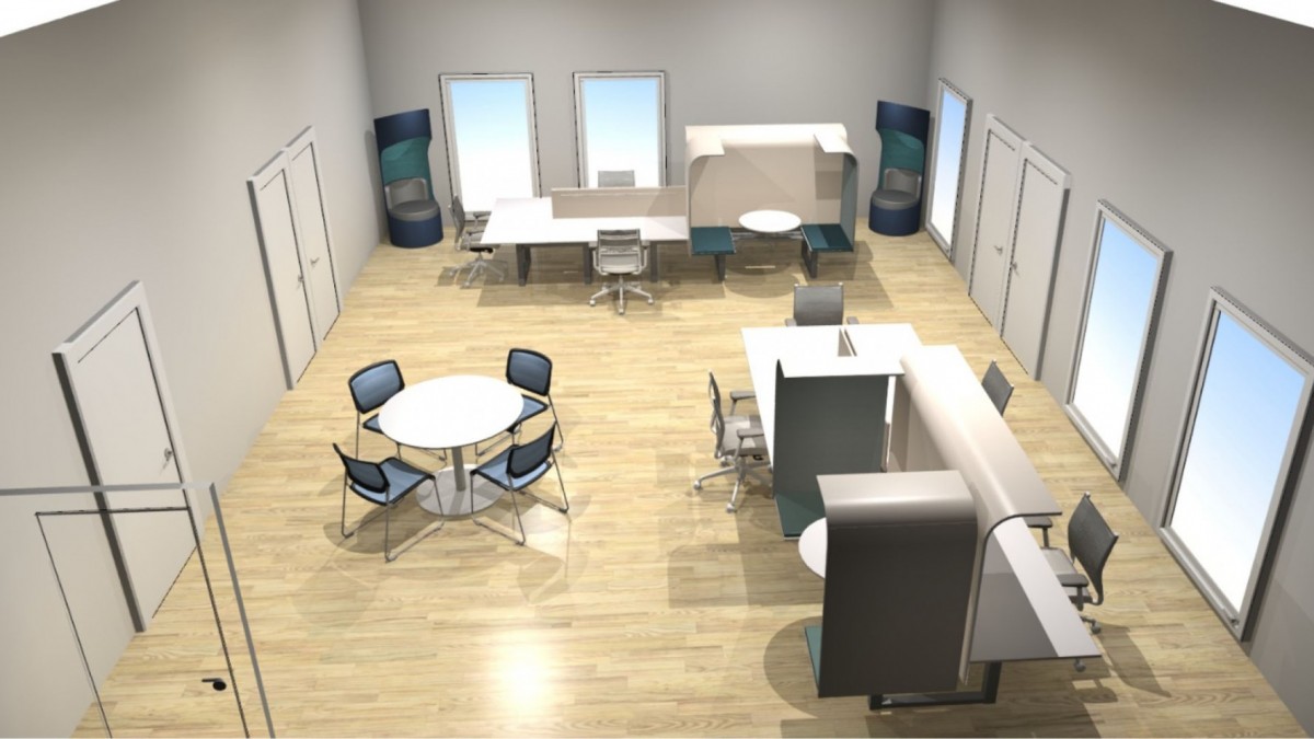 Space that’s now open to Fort Belvoir spouses includes state-of-the-art workspaces with new tech for video calls, noise-canceling telephone booths, an equipped conference room, outdoor seating space, ergonomic features and a coffee bar/lounge area.