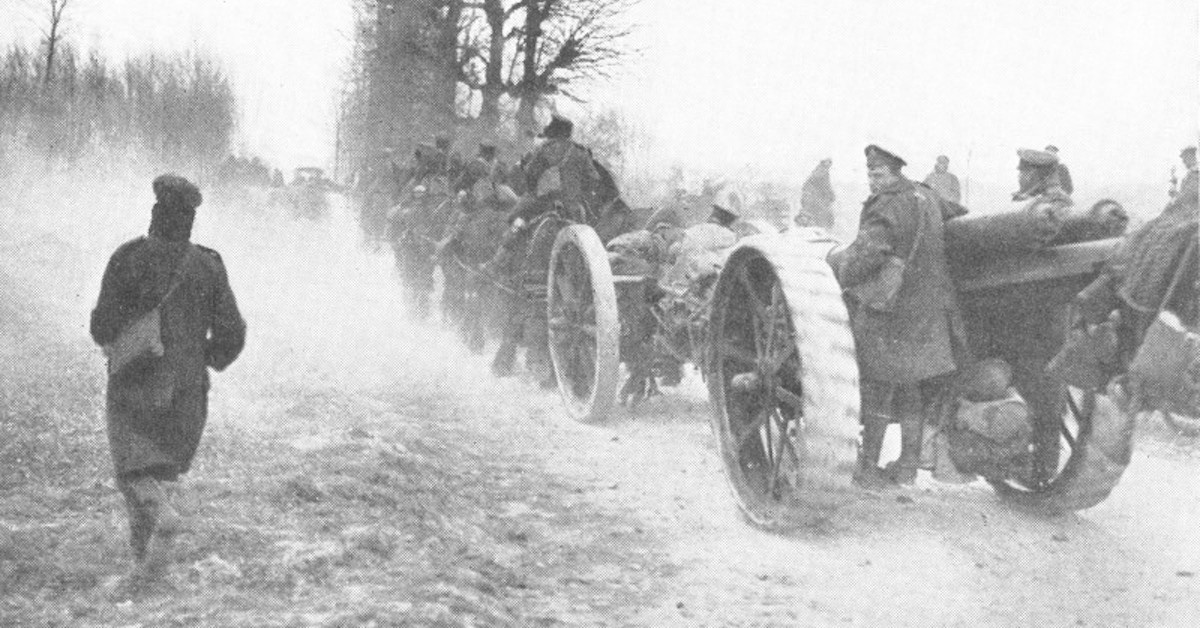 On March 21, 1918, Germany launched its first major offensive in over a year. Known as the Battle of the Somme in World War I, the Germans bombarded the British Fifth Army relentlessly with over 9,000 pieces of artillery. The offensive was also called the Kaiserschlact or Kaiser’s Battle, and codenamed Operation Michael. According to the U.S. Army Center of Military History, “A breakthrough at this point would separate the French from the British, push the latter into a pocket in Flanders, and open the way to the Channel ports.”
