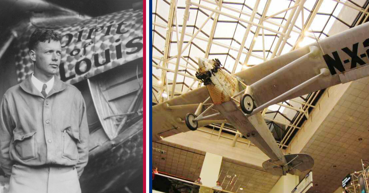 Featured Image: (Left) Charles Lindbergh, with Spirit of St. Louis in the background. (Right) The Spirit of St. Louis on display at the National Air and Space Museum.