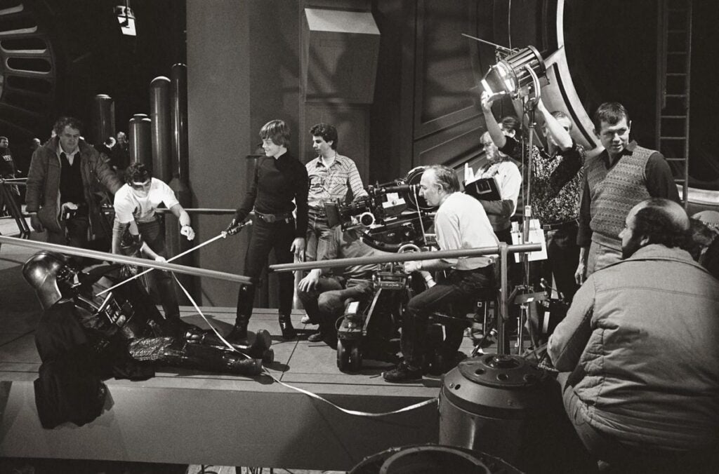 Taylor told Mark Newbold in 2005, “I wanted to give Star Wars a unique visual style that would distinguish it from other films in the science fiction genre. I wanted Star Wars to have clarity because I think space isn’t out of focus, also I was mindful that there was an enormous amount of process work to be done in America with Dykstra after we had finished shooting in England, and a crisp result would help this process”.
