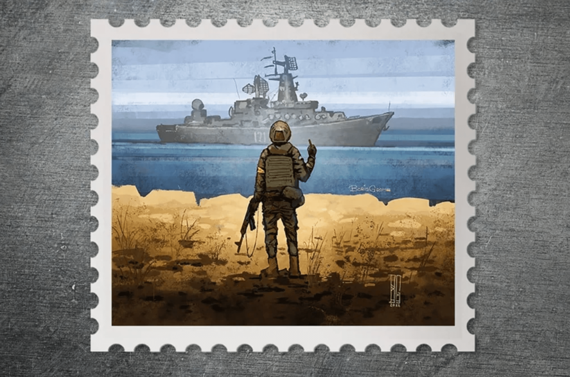 On March 1, the Ukrainian postal service launched a stamp design competition to commemorate the phrase. 11 days later, First Deputy Foreign Minister of Foreign Affairs of Ukraine announced that art by Borys Grokh won the popular vote and would be depicted on the stamp aptly named “Russian warship, go f-k yourself!”