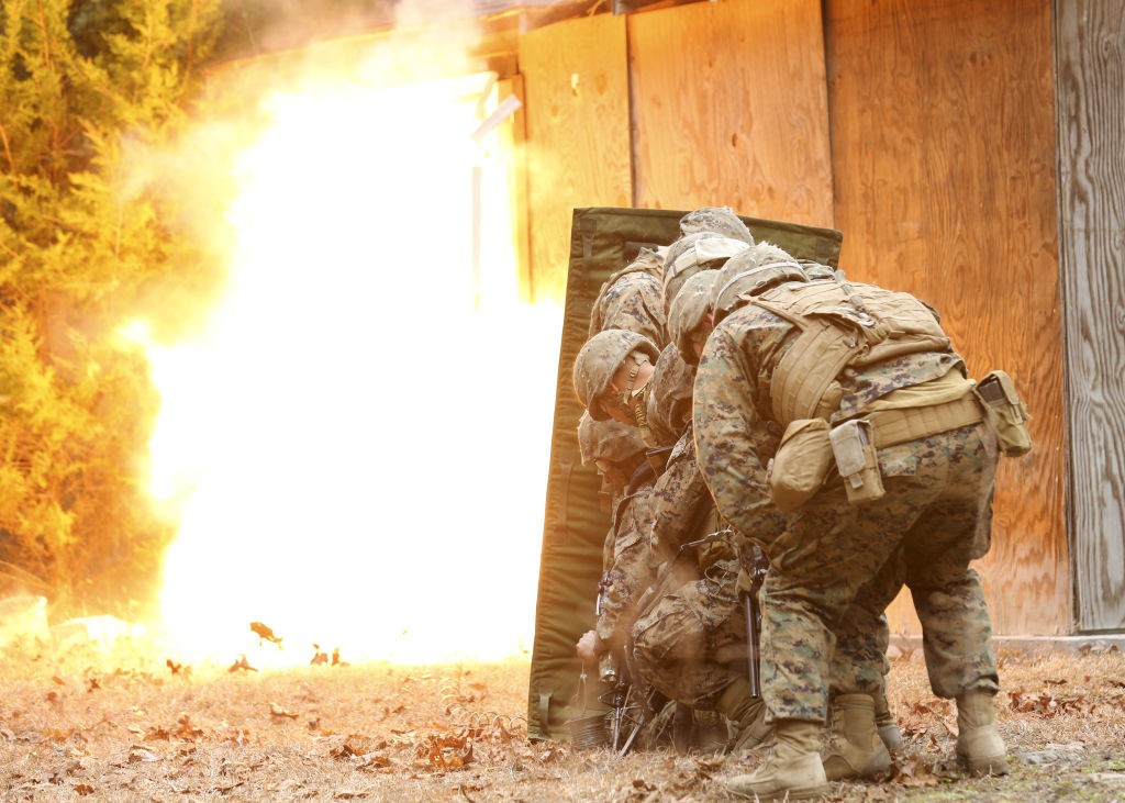 Sometimes it’s not a good idea to go through the door at all. In that case, there are a few ways to rig explosives to make a new opening in a wall. In this video, det cord was placed on a marksmanship target to create a large, oval-shaped explosive and the whole thing was stuck to the wall. When detonated, it makes a hole big enough to run through. To go straight to the explosion in the video, skip to 2:20.