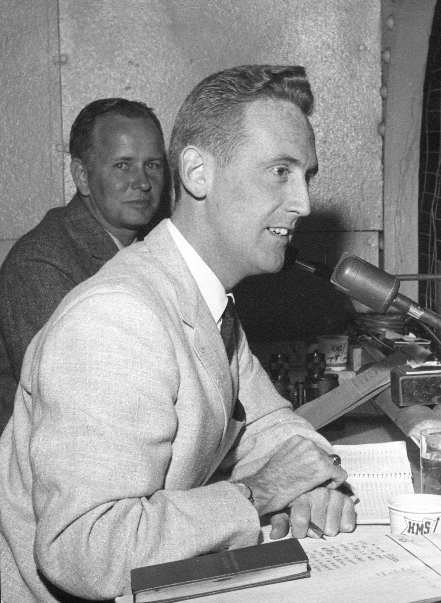 Vincent Edward Scully was born in the Bronx on November 29, 1927. He discovered his love for baseball watching the second game of the 1936 World Series at a laundromat. Scully attended Fordham Preparatory School and served two years in the Navy before starting his freshman year at Fordham College in 1946 to study English. He played outfield for the baseball team before starting his student broadcasting career calling the school’s baseball, basketball and football games for the school’s radio station.