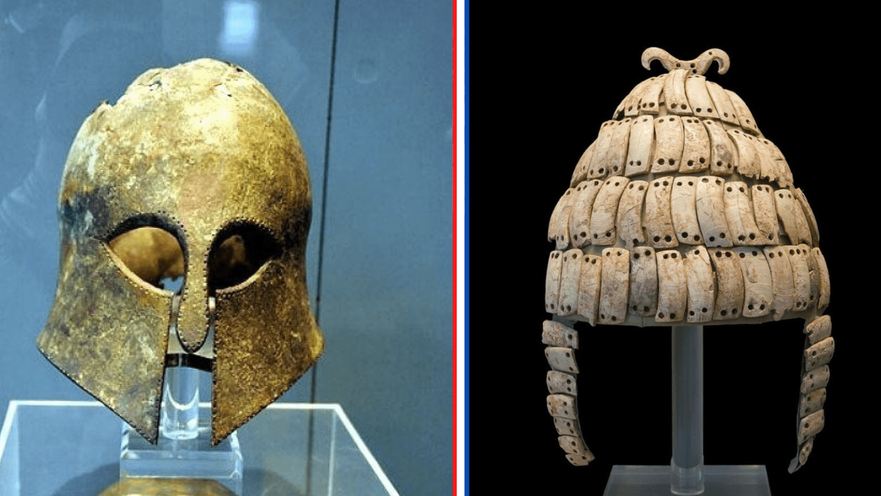 Unlike all other helmets, the Mycenaean Boar’s Tusk Helmet was made from boar’s tusks sewn together and attached to a leather base padded with felt. The military helmets were adorned with horns, horsetails, and crests. During the 17th century, the boar’s tusk helmets were significant in the Mycenaean era as soldiers used them in the trojan war. It shielded them against flying blade edge blows and slings. Although the helmet proved beneficial, approximately 40 to 50 boars would be killed to make just one helmet.