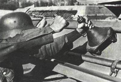 In November 1942, Germany brought the Hafthohlladung into service. Meaning adhesive hollow charge, it was also known as the Panzerknacker or tank breaker. It was a magnetic shaped charge that could be attached to the hull of an enemy tank by infantry anti-tank squads. The Hafthohlladung was capable of penetrating 140mm of rolled homogeneous armor, greater than the thickness of most Allied tank hulls.
