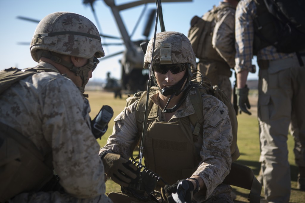 Marines establish communications during an embassy evacuation exercise. Photo: US Marine Corps Lance Cpl. Jodson B. Graves