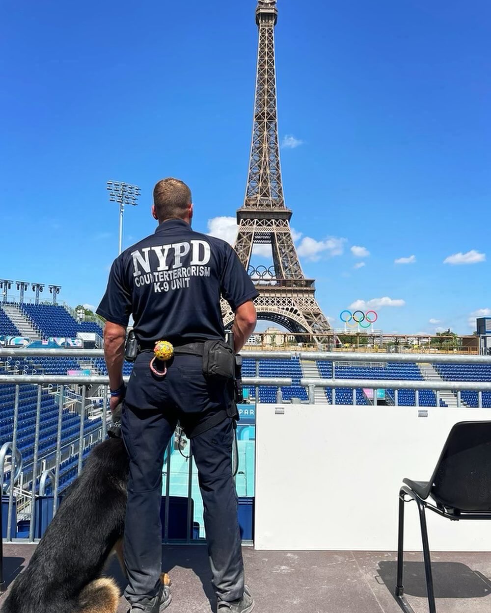From the NYPD, a team of police K-9s is supporting the Paris Olympics. The team includes German Shepherds and labradors trained in the detection of explosives. Along with their human partners, these dogs will patrol Olympic venues in Paris for about two weeks at a time for the duration of the Games. The NYPD did not specify the number of K-9 teams supporting the Olympic security missions.