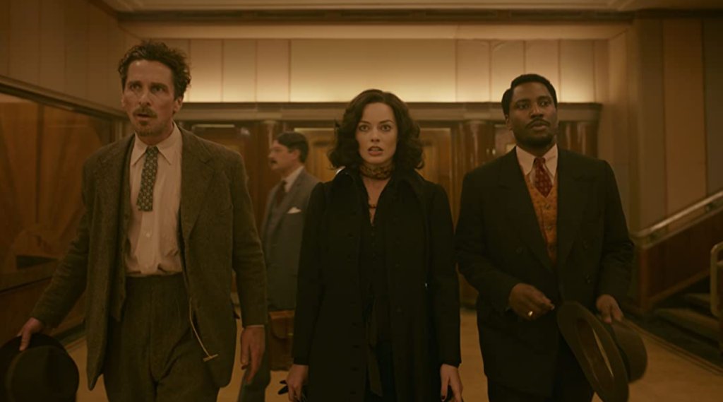 Amsterdam starts with a bang and we are pulled into the lives of our main characters: Christian Bale as Dr. Bert Berendsen, who is a World War I veteran and has a glass eye from an injury in the war; and John David Washington as Harold Woodsman, a fellow World War I veteran and attorney. We come to find Berendsen doing an autopsy on Senator Meekins, who with Berendsen, has a good history. We learn these two veterans met on the battlefield of World War I in a medical unit that was mistreated and forced to wear French uniforms over their U.S. uniforms because of their race.