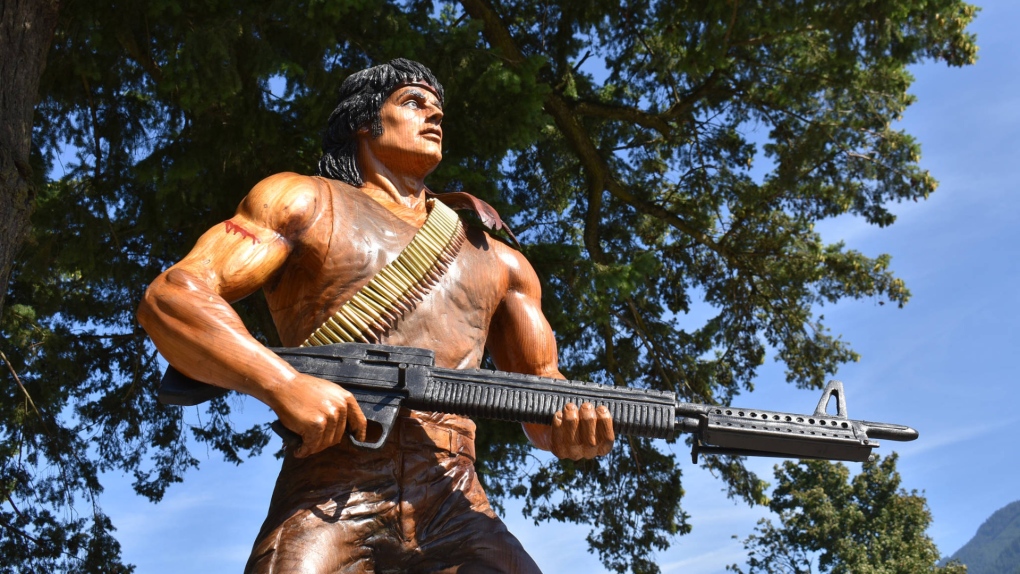 Sly Stallone has one up on all his action movie contemporaries, after a statue of his legendary character John Rambo went up in the small Canadian town of Hope, British Columbia. This one is a wood carving that looks like the Rambo of 1988’s “Rambo III,” made by artist Ryan Villiers of Edmonton, Alberta.